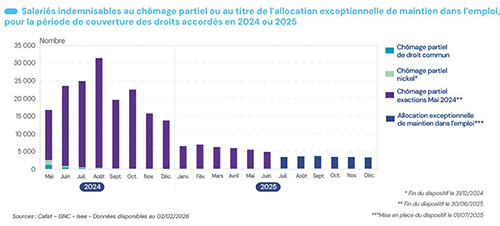 Parmi les salariés toujours en poste, 1 000 bénéficient de l’allocation exceptionnelle de maintien dans l’emploi, un dispositif d’urgence mis en place pour aider les entreprises en difficulté et éviter les licenciements. Cette aide, en vigueur du 1er juillet au 31 décembre 2025, a pris le relais du chômage partiel “exactions”, arrivé à échéance le 30 juin 2025.