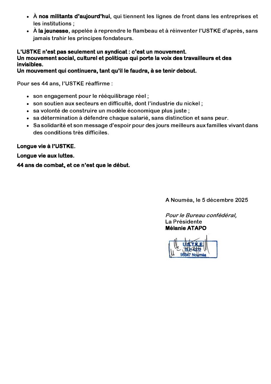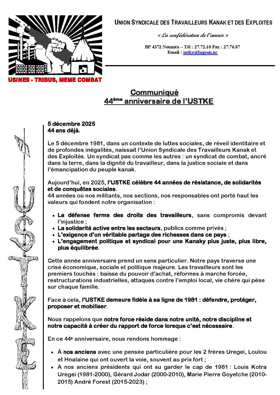 L'USTKE franchira dans un an le cap de son 45ème anniversaire