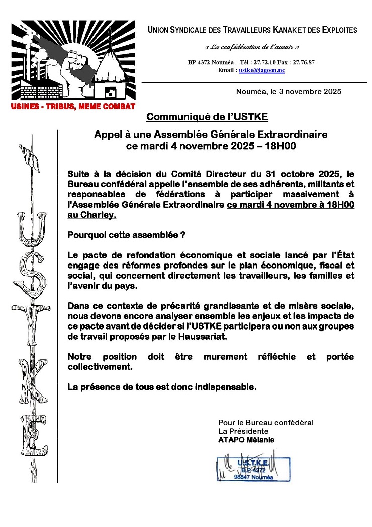 Refus de l'USTKE de participer aux groupes de travail du Pacte de refondation économique et sociale