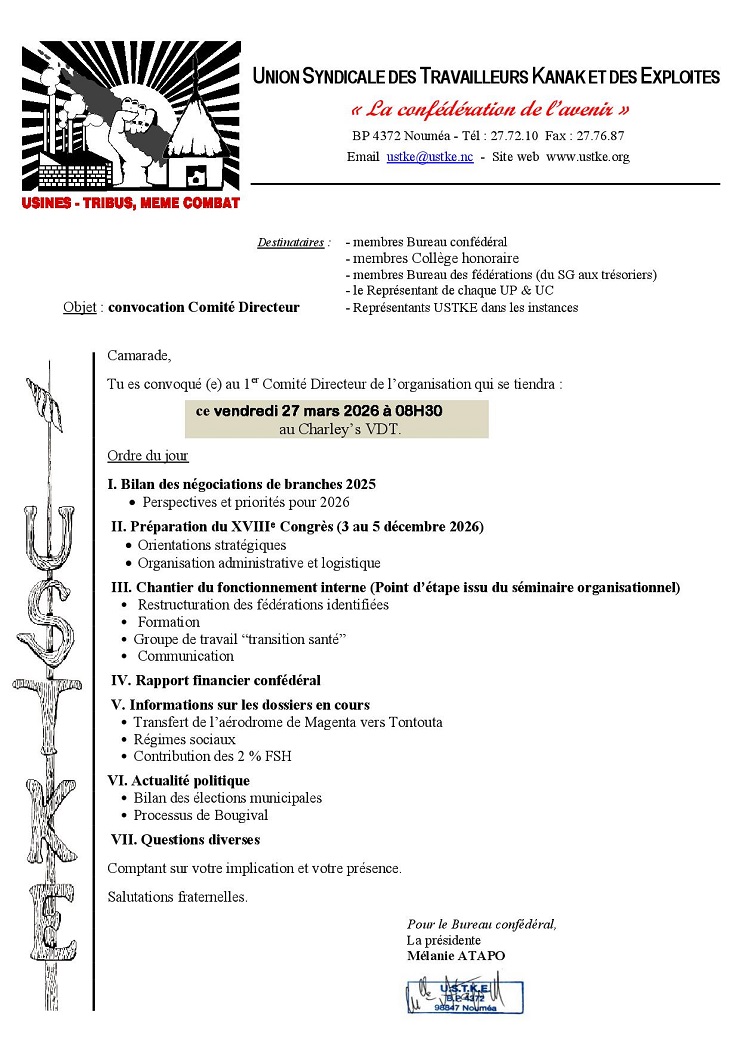 Comité directeur ce vendredi 27 mars 2026 au Charley